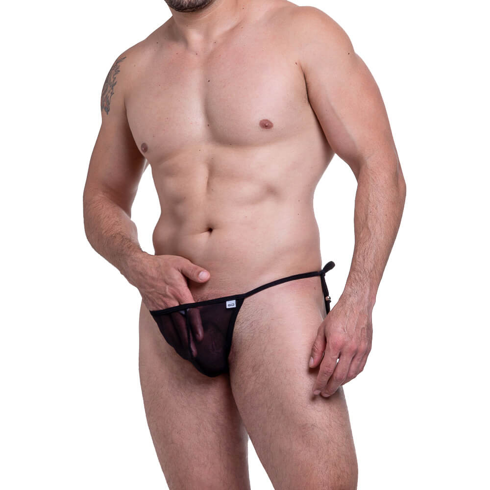 Cueca feita em tecido com transparência, amarração lateral e fio dental, para você surpreender seu amor e ficar ainda mais sexy.