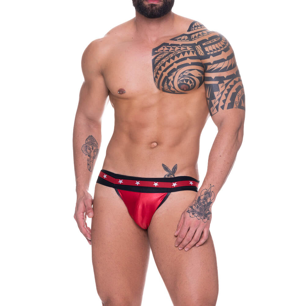 Cueca feita em cirrê com abertura nas nádegas e elástico personalizados com estrelas na cintura. Perfeito para apimentar o relacionamento.
