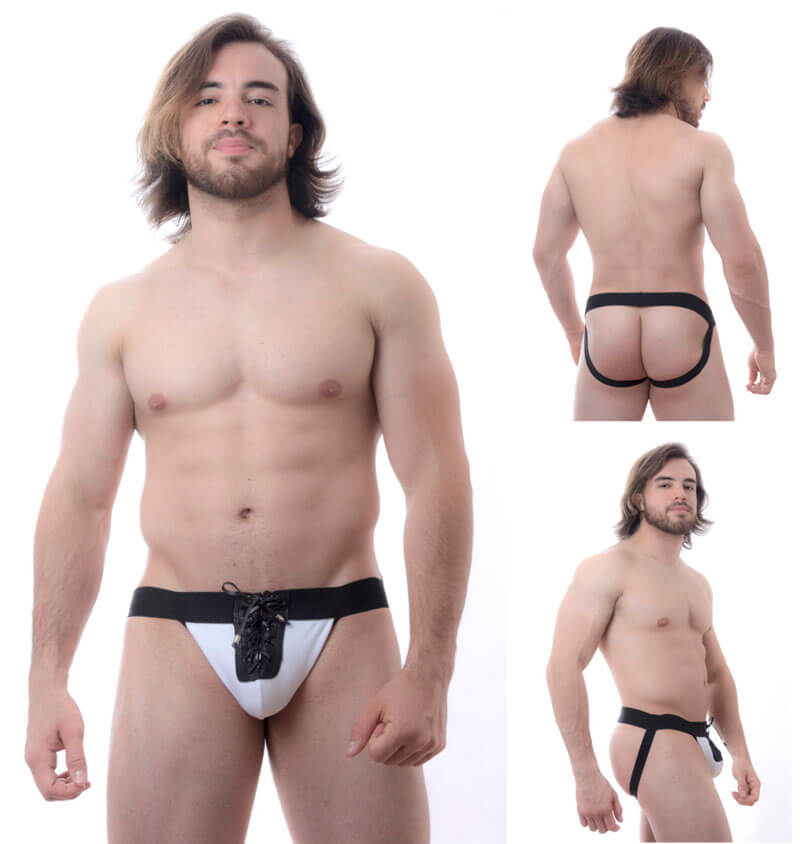 Cueca tapa sexo aveludada branca com detalhe de amarrar na frente e abertura total nas nádegas, em tamanho único. Super confortável e sexy.