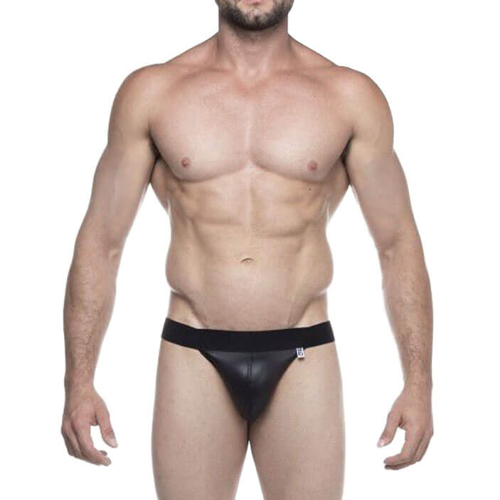 Cueca jockstrap tapa sexo em cirrê com argolas duplas, elástico na cintura confortável e resistente.