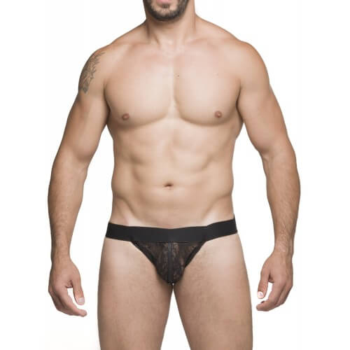 Essa cueca JockStrap é ideal para noites mais românticas, confeccionada em tule com renda floral.