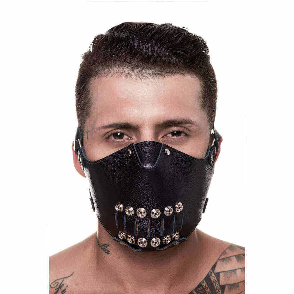 Máscara Para Práticas Fetichistas em Couro Legítimo com Regulagem Nas Alças - Steves Designer