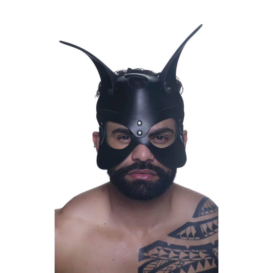 Mascara unissex toda confeccionada em couro sintético com orelhas e ajuste de tamanho na parte de trás!