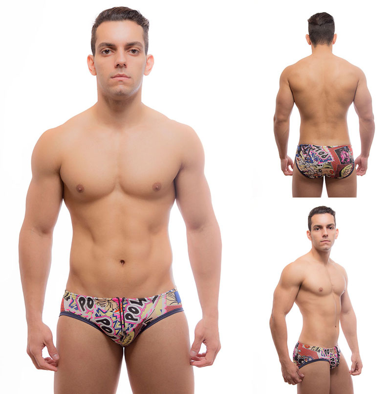 Sunga My Hero com estampa que lembra uma história em quadrinhos, perfeita para ser utilizada em hidros e piscinas.