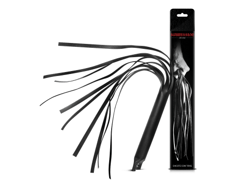 É um lindo chicote confeccionado em couro sintético, perfeito para você que gosta de dominar ou ser dominado, possui tiras para açoitar as nádegas, costas e coxas.