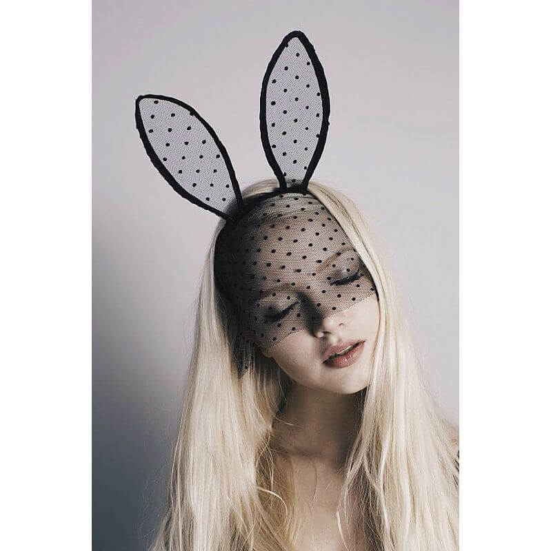 Linda tiara com orelhas de coelho e véu. Toda bordada em renda com bolinhas.