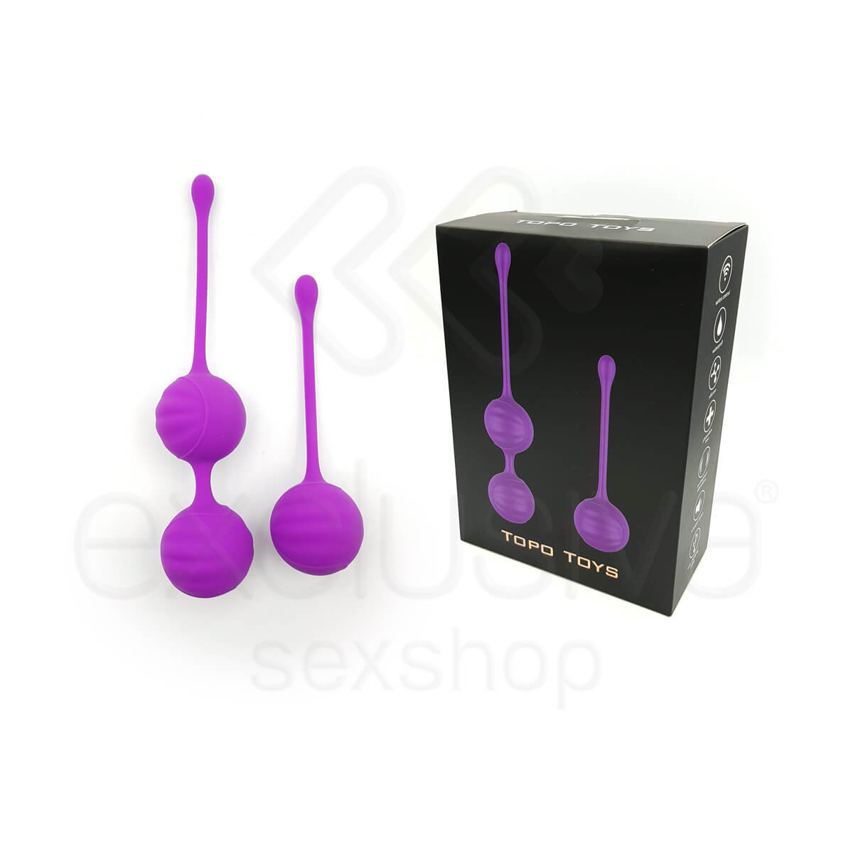 Kit de cordão com esferas para pompoar em silicone. Um dos cordões possuem 2 esferas e o outro possui 1 esfera.