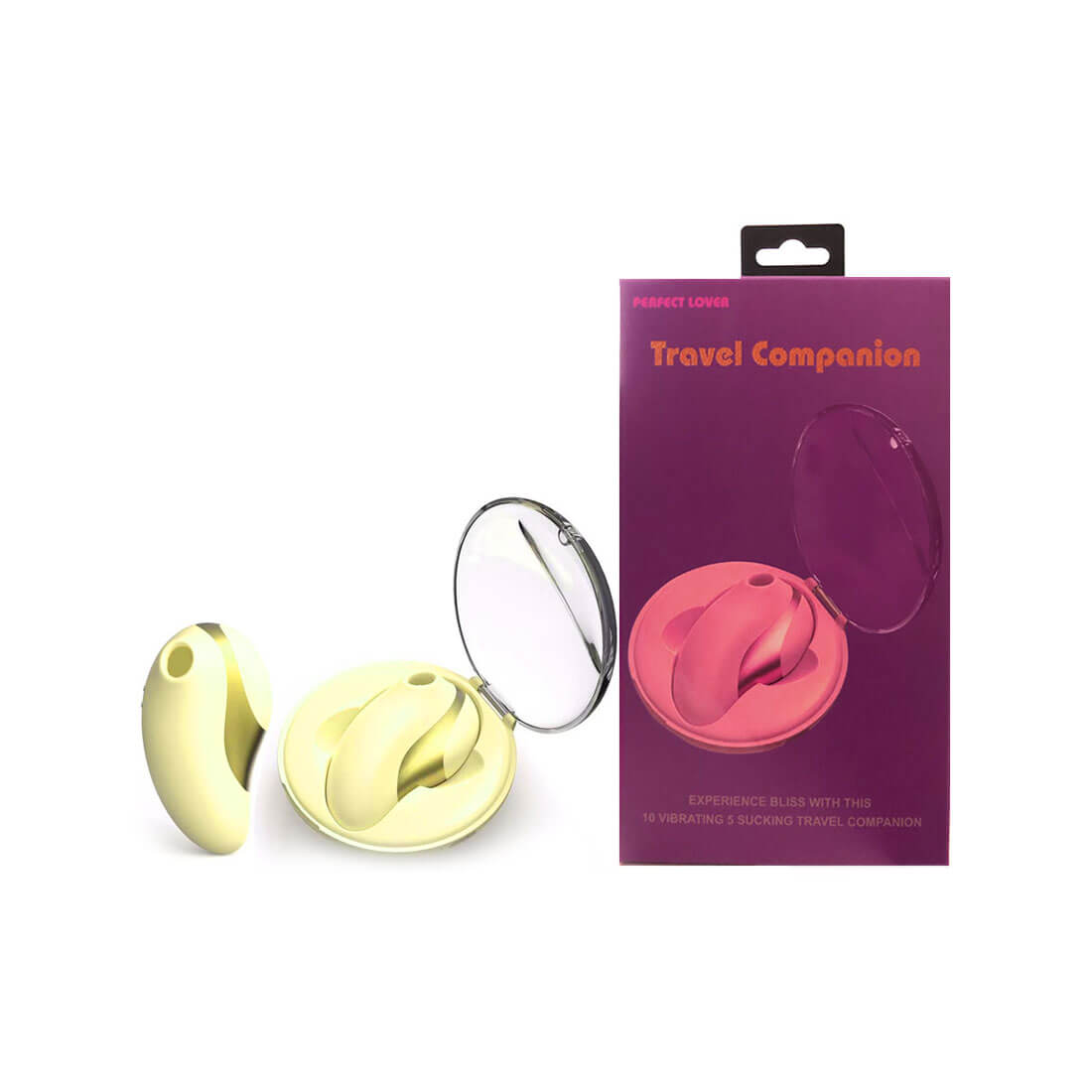 Mini estimulador com 5 sucções, 10 vibrações e design compacto, perfeito para ser levado em viagens. Acompanha caixa para armazenamento/carregamento via magnetismo.