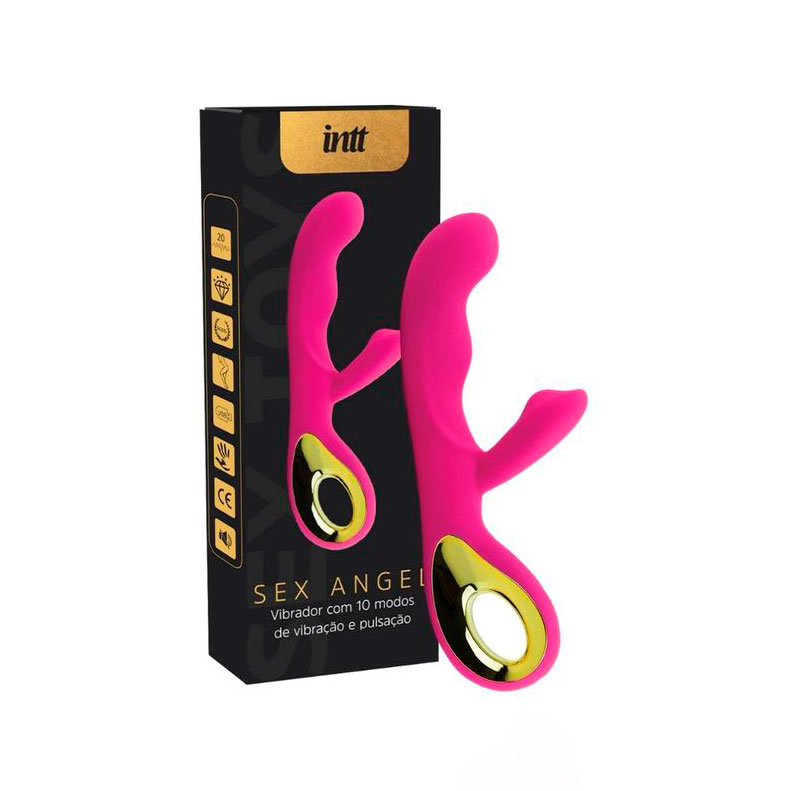 O Sex Angel é um vibrador com 10 tipos diferentes que vibração que te estimulam interna e externamente com máxima potência! UI! Feito em silicone sedoso e macio ao toque, esse neném vai te levar para o paraíso, chega mais!