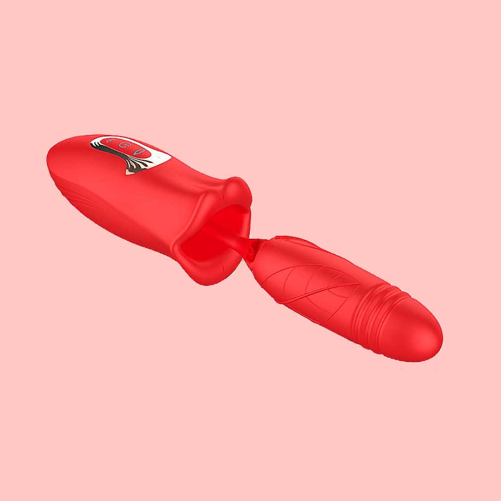 Vibrador com formato de boca e estimulador de ponto em silicone com 10 movimentos de Vai e Vem, 10 modos de abre e fecha dos lábios e recarregável. Chega mais e conheça o Honey Mouth!