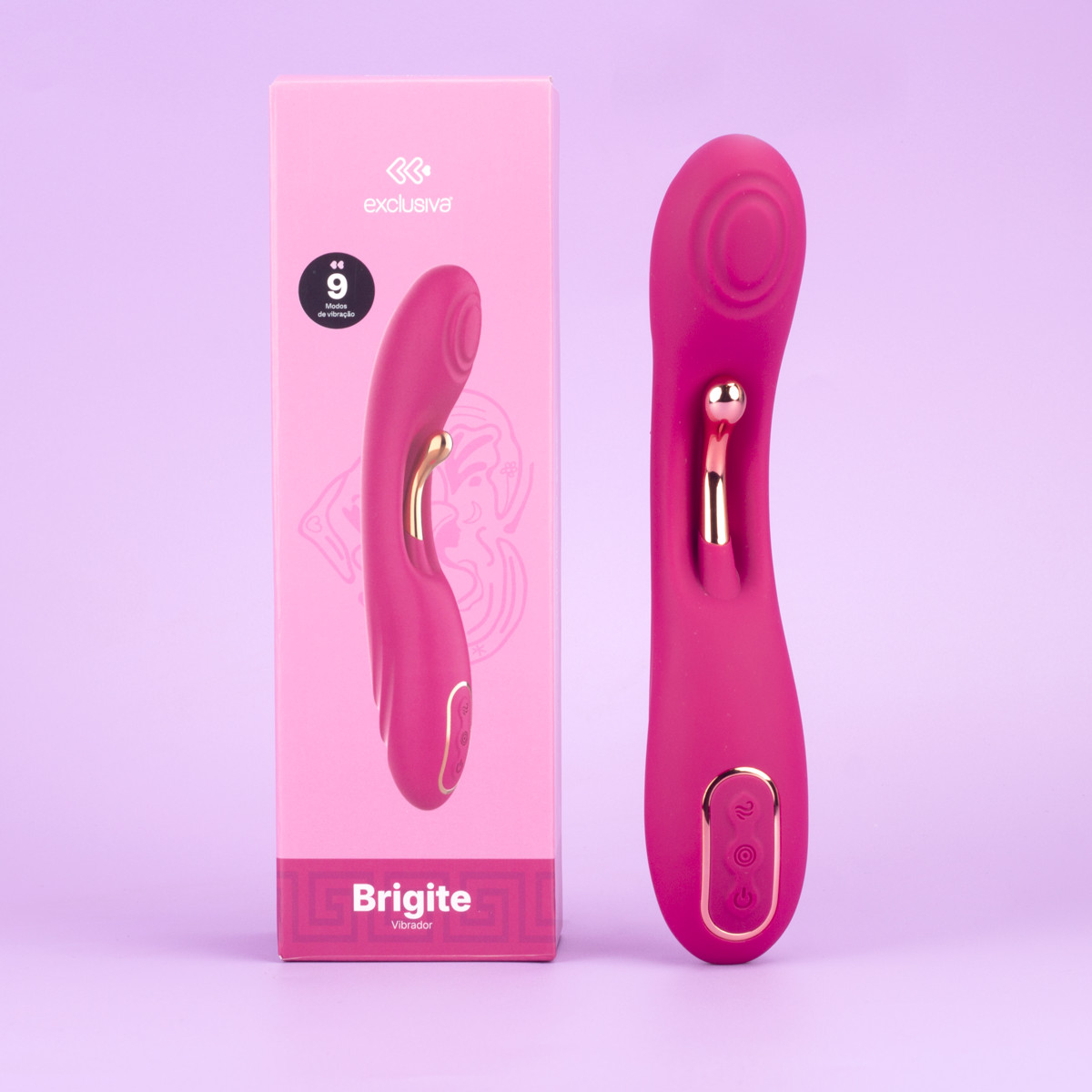 Exclusiva Brigite estimula clitóris e ponto G com 2 motores independentes, 9 modos de vibração e textura extra na ponta. Quer saber mais? Então vem conhecer o luxo em forma de prazer!