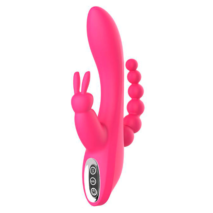 Vibrador estimulador duplo de ponto G e clitóris, feito em silicone soft touch com plug anal escalonado e 2 potentes motores com 10 modos de vibração! Saiba mais sobre essa maravilha aqui embaixo!