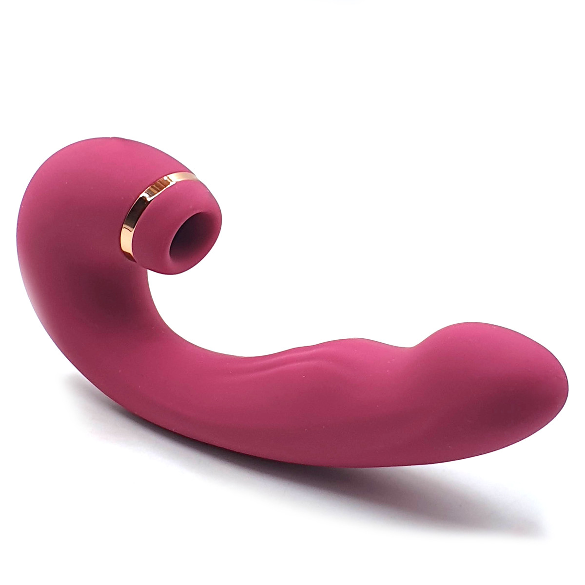 Vibrador duplo, produzido em silicone soft touch e ABS, no formato curvado. Possui 10 modos de vibrações, 5 modos de toque e 5 modos de pulsação, que fará você delirar de tanto prazer. Ui, deu água na boca aí? Chega mais!