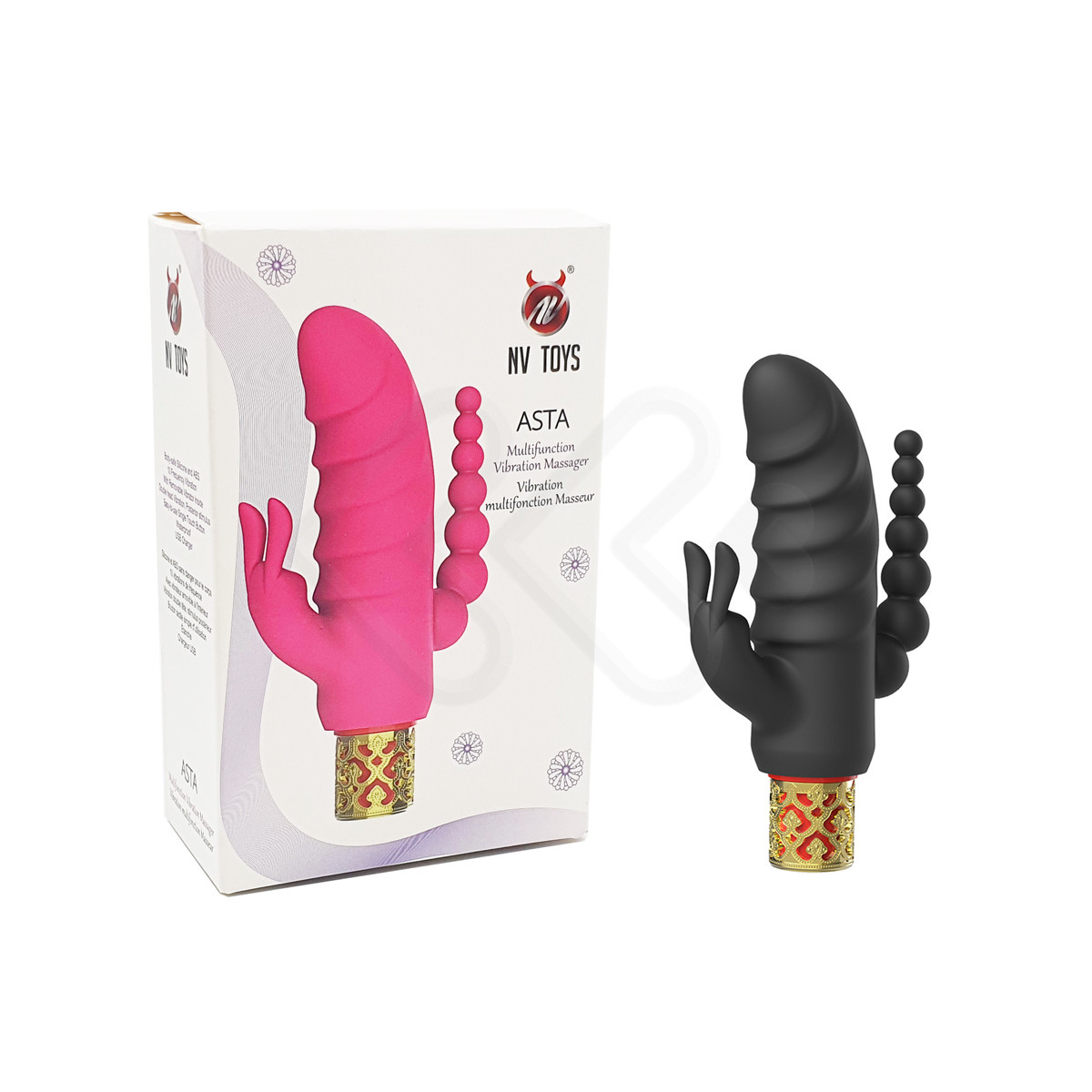 Vibrador de ponto G, feito em silicone aveludado com estimulador de clitóris em forma de coelho e plug anal escalonado. Conta com 10 modos de vibração e carregamento via cabo "USB" magnético. Confira!