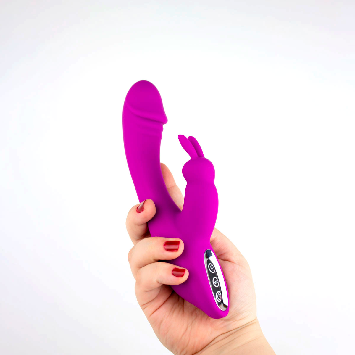 Naughty U é um vibro extremamente potente com um estimulador de clitóris em formato coelho, as orelhas vão te fazer gozar como nunca! Feito em silicone super macio para não agredir a pele e deslizar gostoso. Animou? Vem saber mais!
