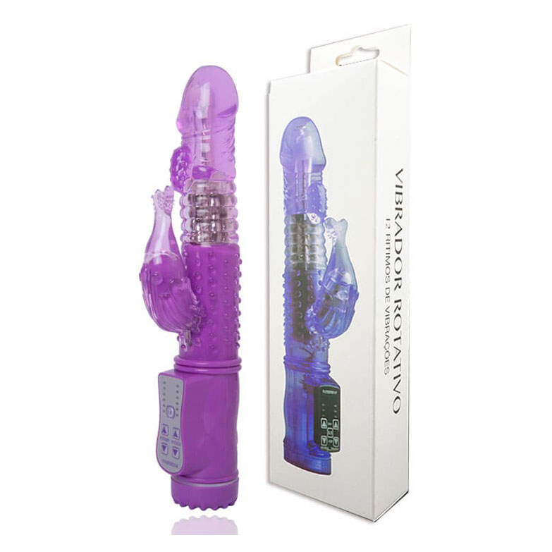 Vibrador rotativo multivelocidade com 12 velocidades de vibração, corpo peniano flexível e texturizado para maior sensibilidade e estimulador clitoriano!