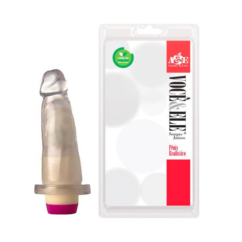 Prótese peniana transparente com glande definida feita em PVC atóxico de toque macio com vibração única em multivelocidade!