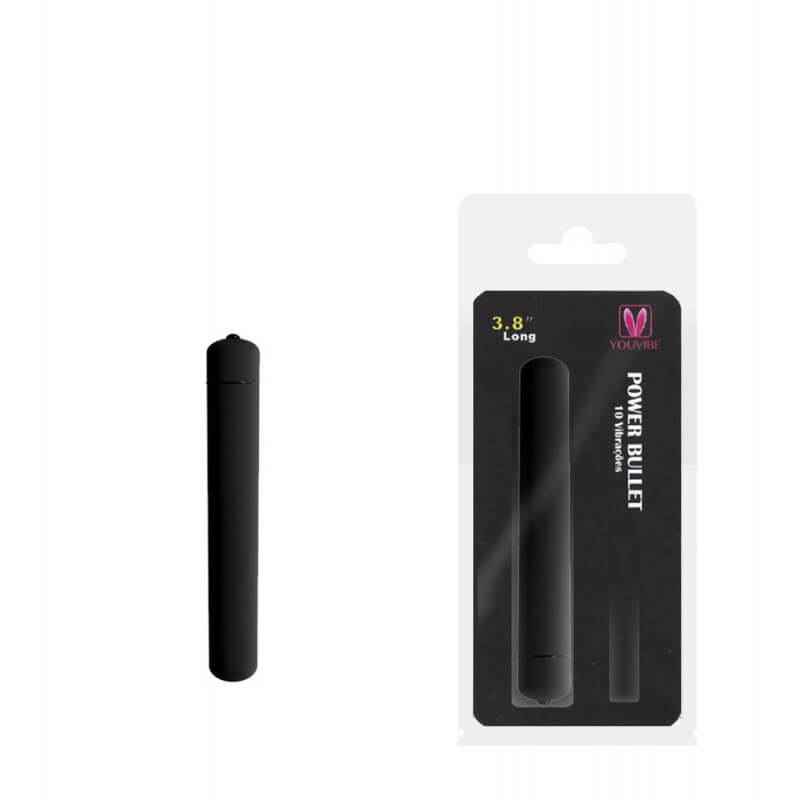 Cápsula Vibratória com 10 modos de vibração na cor preta. Sua característica alongada contribui para estimular todo o corpo de forma delicada.