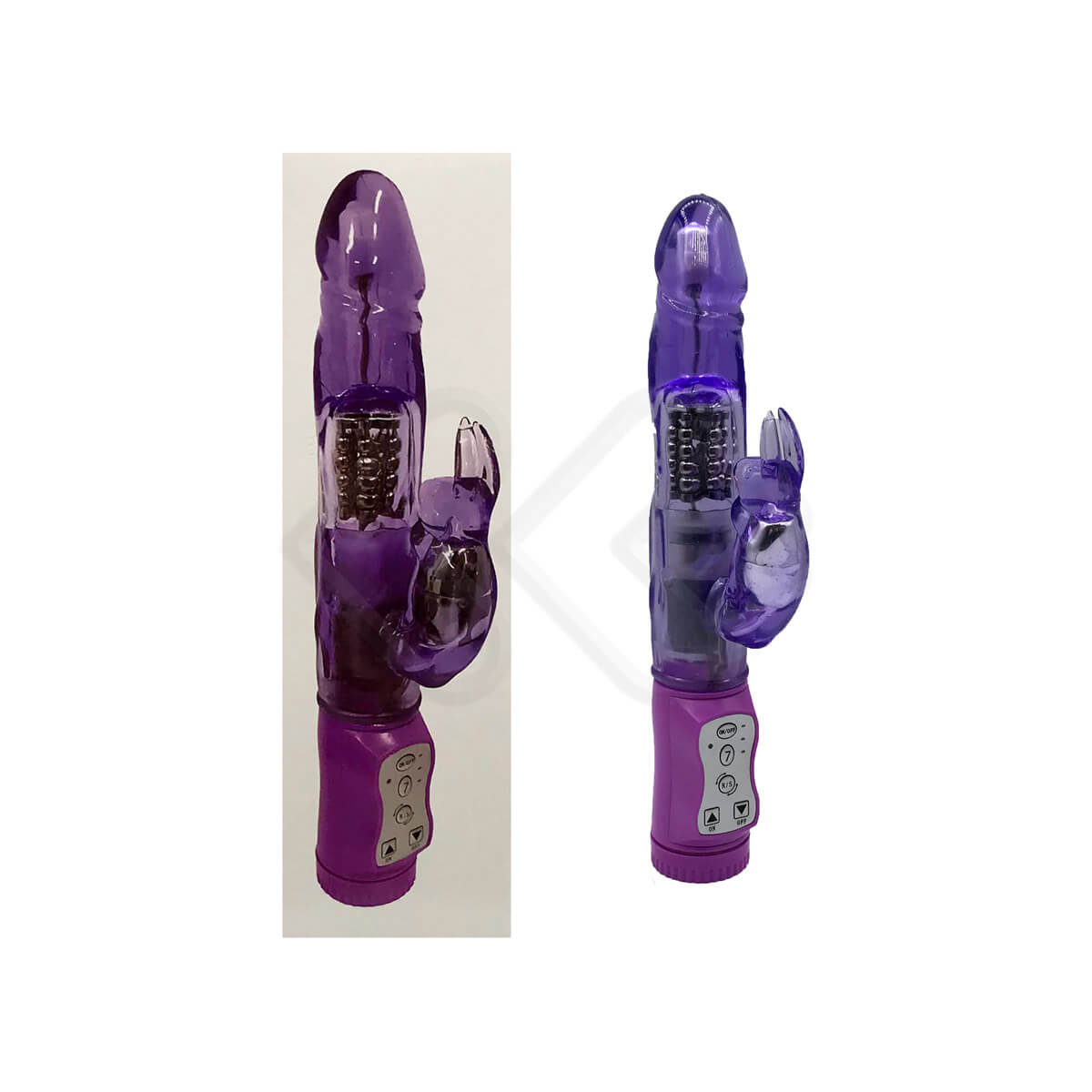 Vibrador de ponto G no formato de glande definida com esferas massageadoras em 3 rotações diferentes e estimulador de clitóris em forma de coelho com 7 modos de vibração.