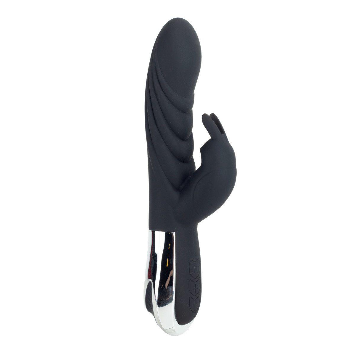 Vibrador de ponto G recarregável, feito em silicone soft touch com estimulador de clitóris no formato de coelho, 6 modos de vibração em 5 intensidades diferentes.